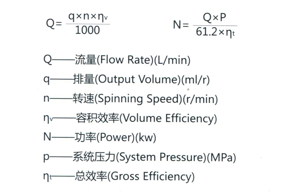 用戶應(yīng)根據(jù)液壓系統(tǒng)實際工況(壓力、流量)和轉(zhuǎn)速,計算岀泵的排量,選擇好型號即可算出泵需要的功率隨后確定電機或其它的動力源。